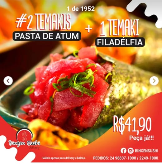 2 Temakis (Pasta de Atum) + 1 Temaki (Filadélfia)