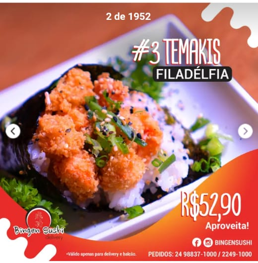 2 Temakis (Pasta de Atum) + 1 Temaki (Filadélfia)